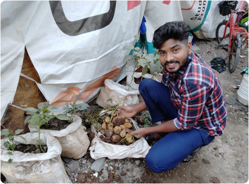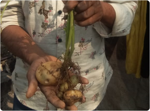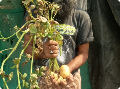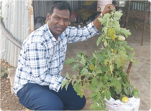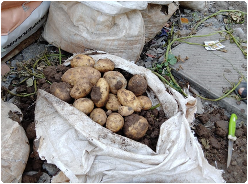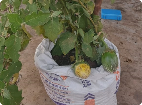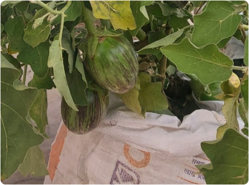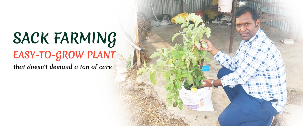 Large size vertical bags thats are filled with manure, soil and small stones that enable water to drain and have holes in them where stem seedings are planted is called sack farming. Its is very popular in India in many states. Sacks farming is also known as Smart Farming.