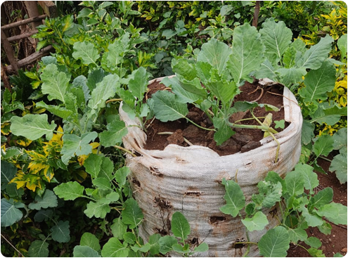 The innovative approach of farming vegetables in sacks by utilizing the vertical space, which takes up little space on the ground offers an alternative to traditional vegetable gardens